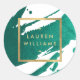Dunkle, smaragdgrüne Pinselstriche schaffen einen abstrakten Hintergrund auf diesem personalisierten Aufkleber-Design. Ihr Name oder Firmenname wird in einer Goldbox für eine moderne Ästhetik in einem Imitat angezeigt. Diese Aufkleber eignen sich hervorragend zum Versiegeln von Umschlägen oder Verpackungen, zum Gebrauch für Produkt- oder Kerzenaufkleber oder zur personalisierten Gestaltung von Bürobedarf. Kunst und Design © 1201AM Design Studio | www.1201am.com