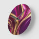 Abstrakt-Flow Art-Fuchsia Lila und Gold- Runde Wanduhr
