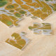 Der Druck wird aus einem abstrakten Gemälde mit gelben Grüntönen und Kupfer übernommen. Großartiges Design für dieses Puzzle und sehr herausfordernd