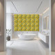 Diese markante Keramik Kachel weist ein gewagtes, abstraktes Zickzack Muster in Gelb-, Weiß- und aquamarinen Farbtönen auf. Das dynamische Design fügt jedem Raum eine moderne und künstlerische Touch hinzu, die sich perfekt für Küchen, Bäder oder Betonwände eignet. Die lebhaften Farben und geometrischen Formen schaffen eine visuell ansprechende Note, die sich sowohl für das zeitgenössische als auch für das eklektische Interieur eignet.