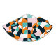 Abstrakter geometrischer Hintergrund mit Quadraten, Dreiecken, Runden und Kreuzen in 3D-Effekt. Farbenfrohe, moderne Muster in orangen, blauen, rosa, marinösen und weißen Kontrastfarben. Kreativ werden mit einem abstrakten geometrischen Muster in lebhaften Farben. Geometrie nimmt die Bühne in diesem abstrakten 3D-Hintergrund in den Mittelpunkt: Muster, quadratisch, modern, geometrisch, abstrakt, geometrisch, geometrisch, afrikanisch, hell, dreieck, Abbildung, Textur, nahtlos, kühl, ethnisch, Memphis, rund, kreativ, originell, quer