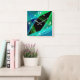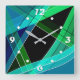 Abstrakt, geometrisch , grün , blau , schwarz quadratische wanduhr