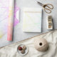 Der abstrakte Hintergrund verwandelte sich in Packpapier, eine weiße Schicht mit dünnen Lichtern in Rosa, Blau und Gelb. Ein lustiges Design für jede Geschenkveranstaltung.