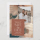 Abstrakt bemalt moderne aquamarine Creme Terracotta chic Hochzeit speichern Sie die Dattelkarte. Modernste Trend Serif Text und Rost Terracotta Backer. Foto Save the Date