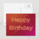 Glückliche Geburtstagsbriefe auf einem schönen rosa/roten Hintergrund mit Sternen und hellen Streifen.