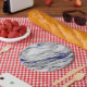Abstrakt Graue blaue Marmorplatte Glam Golden Vip Pappteller