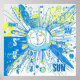 Eine strahlende Sonne in einem knackigen und chaotischen abstrakten Wortart-Stil, blau und gelb gefärbt.