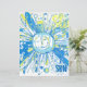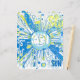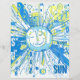 Eine strahlende Sonne in einem knackigen und chaotischen abstrakten Wortart-Stil, blau und gelb gefärbt.