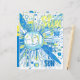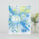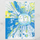Eine strahlende Sonne in einem knackigen und chaotischen abstrakten Wortart-Stil, blau und gelb gefärbt.
