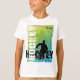 Abstrakt Hockey Youth Kids Shirt. Hockeyspieler Silhouette auf blauem und grünem abstraktem Hintergrund. Das Wort Hockey geht auf die Seite.