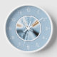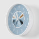 Die Rundwand zeigt eine abstrakte, blaue Farbskala mit Fraktal auf einem eisblauen Hintergrund und weißen Ziffern.