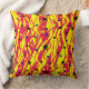 Kopfkissen mit chaotischen, farbigen Linien und Sternen, rot und gelb