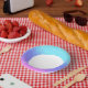 Abstrakte Quadrate hellblaues Rosa und lila Design.