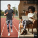 Modische Frauenmodelle, die abstrakte Leggings in Schwarz und Weiß auffallen, ein Muss für alle, die einzigartige und stilvolle Aktiv-Bekleidung suchen.