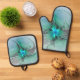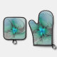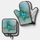 Abstrakt mit blauer, moderner Kunst des Fraktals Ofenhandschuh & Topflappen-Set