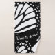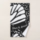 Abstrakter Monarchschmetterlingflügel mit motivierend Text - wagen Sie sich zu träumen! - schmückt das Set der Badehandtücher in Schwarz und Weiß. Passen Sie es an, indem Sie die Farbe der Handtücher ändern. Ihre Farbe ersetzt die größeren weißen Flügelflächen und paart sich mit schwarzen und kleineren unregelmäßigen weißen Punkten, die den Flügel umrahmen. Zusätzlich personalisieren Sie den Text. So ist es einfach, Ihre Badezimmerdekoration oder erstellen Sie ein personalisiertes neues Zuhause-Geschenk für Ihren Cousin. Für kundenspezifische Designs oder Hilfe bei der Anpassung wenden Sie sich an https://t.me/KBMD3signs_chat.
