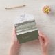 Eine Farbe strickt Aquarellfarben in glitzernden Olivgrün-Schattierungen mit Lavendelspießen betont die Teile dieser schönen Hochzeitssuite. Die Einladung und das UAWG, die hier gezeigt werden, sind mit eleganter handgeschriebener Kalligraphie und einer Vorlage versehen, um ganz einfach Ihre eigenen Namen und Veranstaltungsdetails hinzuzufügen. Suchen Sie ID886, um weitere Teile und Farboptionen für dieses Set zu sehen.