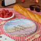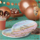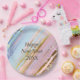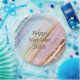 Fügen Sie einfach das Jahr hinzu (oder ändern oder löschen Sie den Text) auf dieser schönen pinks Blues und Golden Match Set von Tellern, Napkins Untersetzer und mehr.