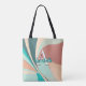 Diese moderne abstrakte Totentasche ist auffallend und macht mit ihrem Retro-Look aus Pfirsich, aquamarinen, Aqua- und Tonrost-Wirbel eine Aussage. Fügen Sie einen Namen und eine Initiale, um ihn zu personalisieren. Erstellt von der einfachen Farmhouse Press.