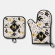 Abstrakt Schwarz-Gelb-Grau Nahtloses Muster Ofenhandschuh & Topflappen-Set