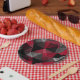 Abstrakt, schwarz und rot, Dreieck, geometrisch, b Pappteller