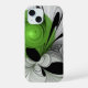 Abstrakt Schwarz und Weiß mit einem grünen Fraktal iPhone 15 Hülle