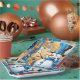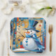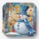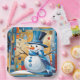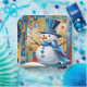 Die abstrakten Bildelemente schaffen eine skurrile und fantasievolle Winterlandschaft. Der Schneemann mit seinem Hut und dem blauen Schal hebt sich durch seine bunten Knöpfe hervor und verleiht ihm eine spielerische Touch. Spätere Ornamente tragen zur festlichen Atmosphäre bei, während ihre Formen und Farben in surrealer Weise in den Hintergrund eingehen.