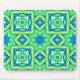 Mouse Pad in geometrisch abstraktem Sternmuster In den Farbtönen von Kalkgrün, Gebirgsblau und Türkis, mit tiefblauem Akzent
