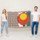 Diese Wurfdecke hat ein modernes Design von horizontalen waagerechten Linien mit zwei Kreisen und zwei horizontalen breiten Streifen. Woll verschiedene Farben? Nachricht.