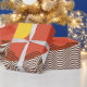 Dieses Verpackungspapier hat ein modernes Design von waagerechten waagerechten Linien mit zwei Kreisen und zwei horizontalen breiten Streifen. Woll verschiedene Farben? Nachricht.