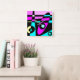 Abstrakt Surfen Türkisblau Heiß rosa Gelb Schwarz Quadratische Wanduhr