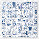 Dieses abstrakte Design weist ein komplexes Muster handgezeichnet Doodles auf, das einem Entwurf oder technischen Schemata ähnelt. Intrikierte Linien, Formen und maschinenähnliche Symbole vereinen sich in einem chaotischen, aber einheitlichen Durchgang, perfekt für Liebhaber industrieller oder futuristischer Kunst. Die marineblauen Skizzen auf einem hellen Hintergrund schaffen einen visuell ansprechenden Kontrast und bieten eine moderne, technisch inspiriert Ästhetik.