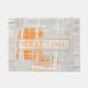 Moderne weiße, graue, orange abstrakte Türmatte. Klicken Sie auf die Schaltfläche Personalisieren, um den Text von WELCOME zu ändern. Klicken Sie auf den Text anpassen, um Ihren eigenen Text und Fotos hinzuzufügen, um ein einzigartiges Design zu erstellen.