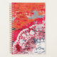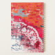 Das ist ein wunderschönes abstraktes Kunstdesign in warmen Rot und Orange mit etwas Blau als Kontrastfarbe. Es wurde mit Acrylfarbe und einer Gelplatte hergestellt, die ein rustikales, gerissenes Design verleiht.