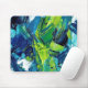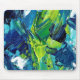 Fließendes abstraktes Design mit breiten Pinselstrichen in Blau und einem Hauch von Neon-Grün, das dem gesamten Design einen peppigen Akzent verleiht.