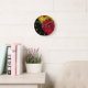Fügen Sie einer leeren oder farblosen Wand einen zeitgenössischen Glanz hinzu. Dieses abstrakte Design zeichnet sich durch rote, gelbe und goldgezackte geometrische Formen aus, und nur fünf von 12 Zahlen über einen schwarzen Hintergrund. Eine gute Überlegung für ein Hauswärmespeicher.