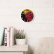 Fügen Sie einer leeren oder farblosen Wand einen zeitgenössischen Glanz hinzu. Dieses abstrakte Design zeichnet sich durch rote, gelbe und goldgezackte geometrische Formen aus, und nur fünf von 12 gelben Zahlen auf einem schwarzen Hintergrund. Eine gute Überlegung für ein Hauswärmespeicher.