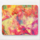 Dieses Mauspad hat ein abstraktes Muster in orangefarbenen, gelben, rosa, blau-grünen und cremefarbenen Farben, das an die alkoholische Tinte erinnert.