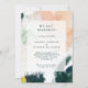 Diese farbenfrohe abstrakte Ankündigung ist perfekt für Ihren einzigartigen, modernen Boho-Auftritt. Handgemalt mit strukturierten Pinselstrichen aus dunklem Smaragdgrün, Pfirsich und Senf, alles überlagert mit einem minimalistisch transparenten Quadrat, ist es sicher, Ihrem Anlass ein einfaches, aber rustikales bohemianisches Gefühl zu geben.