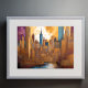 Abstrakte Aquarellmalerei Gold Citycape 4:3 Poster