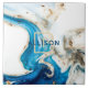 Schöne abstrakte Kunst mit blauen, weißen und goldenen Staubfarben in elegantem Marmor. Moderne, zeitgenössische Malerei mit modernem Monogramm-Schriftart. Passen Sie die Schriftart- und Schriftart-Farben nach Ihren Wünschen an.