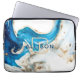 Schöne abstrakte Kunst mit blauen, weißen und goldenen Staubfarben in elegantem Marmor. Ein moderner, zeitgenössischer Maldruck mit einem modernen Monogramm-Schriftart, der Ihrem Laptop einen besonderen Look verleiht. Passen Sie die Schriftart- und Schriftart-Farben nach Ihren Wünschen an.