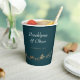 Diese maßgeschneiderten Papiertassen verfügen über eine abstrakt gestrichene Bergkette in Imitaten mit Goldfolie. Die Paarnamen werden in einem großen, eleganten Schriftart hervorgehoben, der ein elegantes Ambiente schafft. Die Goldfolie der Imitate verleiht dieser einzigartigen Touch eine ganz besondere Note. Der dunkelgrüne Hintergrund kann an Ihre Veranstaltungsfarben angepasst werden. Diese Becher enthalten einen Platz zum Hinzufügen von Ereignisdatum oder -ort.