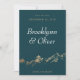 Diese Ankündigung Datum freihalten Karte zeigt einen abstrakten bemalten Berg in Imitat Gold. Die Paarnamen werden in einem großen, eleganten Schriftart hervorgehoben, der ein elegantes Ambiente schafft. Die Goldfolie der Imitate fügt eine perfekte, malerische Touch hinzu, die das Ankündigung Datum freihalten wirklich von der Masse abhebt. Der dunkelgrüne Hintergrund kann auf Ihre Hochzeitsfarben abgestimmt werden. Die Rückseite der Karte hat einen Platz, um eine Hochzeitswebsite-Adresse.