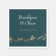 Diese individuell gefertigten Papierservietten verfügen über eine abstrakte, bemalte Bergkette in Imitaten mit Goldfolie. Die Paarnamen werden in einem großen, eleganten Schriftart hervorgehoben, der ein elegantes Ambiente schafft. Die Goldfolie der Imitate verleiht dieser einzigartigen Serviette eine perfekte malerische Touch und ist somit ein perfektes Kompliment für jede Veranstaltung. Der dunkelgrüne Hintergrund kann an Ihre Veranstaltungsfarben angepasst werden. Diese Servietten enthalten einen Platz, um Ihr Veranstaltungsdatum oder -ort hinzuzufügen.