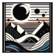 Eine schöne und kreative abstrakt Darstellung einer Bergsee Landschaft bei Nacht, in Schwarz und Weiß gehalten mit einigen Blau Kontrast Farben.