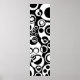 Ein aufregendes und lustiges abstraktes Design aus kreisförmigen Blasen wie Formen in hochkontrastfarbenem Schwarz-Weiß. Dieses Design wurde ursprünglich für ein Skateboard gemacht, aber es macht auch ein ausgezeichnetes Poster, das enge Verhältnis von Breite zu Höhe macht es auch ideal für das Hängen in Bereichen, wo der Platz begrenzt ist, z.B. zwischen den Türen.