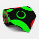 Ein aufregendes, lustiges, dynamisches, kühnes, modernes abstraktes Design, bestehend aus kreisförmigen Blasen wie Formen in lebhaften kontrastierenden Rot und Grün mit Schwarz.