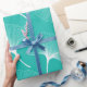 Abstrakte Blätter in Weiß und Türkis Geschenkpapier