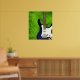 Abstrakte blaue E-Gitarre mit grünem Hintergrund Poster